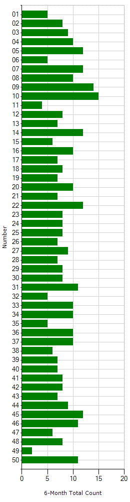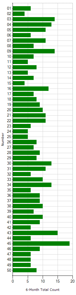 The chart data is derived from the total count of winning numbers in the past 6 months. Since the bonus number is selected
