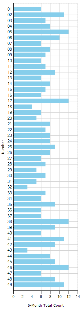 Lotto649 Number Counts (6 Months)